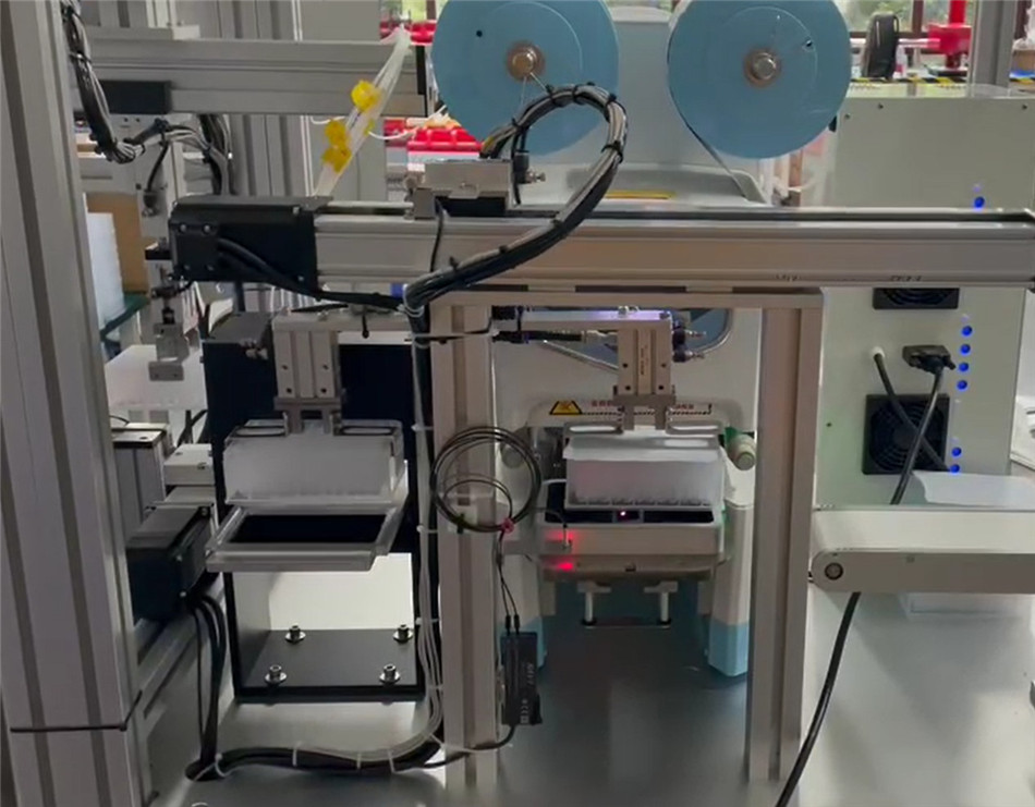 此類設(shè)備可實現(xiàn)多孔板自動儲料—>自動供料—>自動吸塵—>自動定位—>自動灌裝—>自動封膜—>自動打標(biāo)貼標(biāo)—>CCD檢測封膜及貼標(biāo)效果—>自動計數(shù)出料緩存等一系列動作,使該類產(chǎn)品的灌裝封膜貼標(biāo)工序?qū)崿F(xiàn)自動化,提升產(chǎn)能及品質(zhì),節(jié)省人工。
